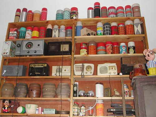 P.S. If you go to the store, be sure to tell Stuart you read about it on Julie's web site. Please note: This article was written in 2002. The store has significantly changed from the description below. I can't think of a more entertaining way to spend a Saturday afternoon than rummaging around my favorite antique store, listening to Bob Dylan or NPR and discussing current affairs with owner Stuart Morris. Mt. Rainier, Maryland, is fortunate to have what I consider to be the best second-hand store in the region. I first learned about the store from an article in the Washington Post Home Section. As soon as I read it, I knew I had to go there. I showed up on the following Saturday, about an hour too early for its opening. I was thinking about whether I should wait until noon (not seeing much else to do in that neighborhood for a whole hour), when a banged-up looking truck with a load of 1950s era dinette chairs pulled up in front. When I asked the driver (I had no doubt it was the store's owner) if he would be open on Sunday, he said no. But seeing me head away from his store, he invited me to come inside while he unloaded. Jammed packed with interesting items in various stages of disorganization, the store was a dream come true to a thrift store lover such as myself. I was bowled over by his collection of retro kitchen canisters. (I tried to take a picture of them, but the flashback off of the chrome ruined the picture, and nearly blinded me.) The various nooks in the store contain furniture, toys, housewares, books, art pottery, clothes, and things that defy categorization. I'm waiting for Stuart to acquire a plaid-colored bowling ball, so that I can purchase it and ten of his plaid thermoses and have a bowling tournament on the sidewalk. I think it would be a great way to attract more customers, although I haven't run this by him yet. I try to get back to Mt. Rainier Antique Thrift and Salvage every few weeks, just to see what new has shown up. Even when I'm deep in the zone, searching through some box that wasn't there the last time I visited his store, I find it pleasant to hear him greet every customer, many of whom he knows by name. Even in negotiations, Stuart maintains an even disposition and explains gently and without disrespect to the customer what he thinks an item is worth and why. There should be more places like this on earth. It's a Tacky Treasure. And Stuart, of all people, knows I mean it in the best possible way. Mt. Rainier Antique, Thrift and Salvage (301)779-1740 Hours (it is highly recommended that you call first to be sure he