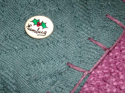 I'm not a Scrooge, really. I just get tired of Christmas carols by Thanksgiving, especially after they've been playing everywhere since right after Halloween. This tiny pin is my quiet protest. It's also an expression of solidarity with people who get Christmas rammed down their throat even if it's not part of their theology. Christmas is the time of year I like to think about, and to show, how fortunate I feel to have the friends and family that I do. And that's something that anyone can do, regardless of religion. |