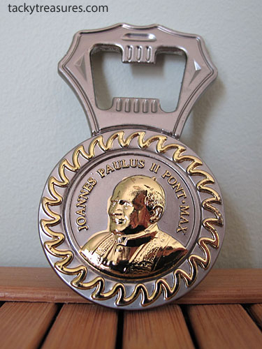 After Pope John Paul II died in 2005, more popeners showed up on the market. He's still the favorite among Pope memorabilia collectors. There's now a Pope Benedict XVI popener, but you will find that there's an image of Pope John Paul II on the opposite side. And, surprisingly, Popes from the distant past are showing up on popeners as well as Popes that aren't even Popes at all.