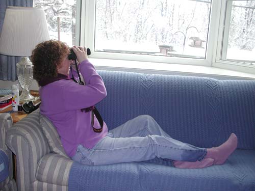 Most birders keep a life list. I keep a couch list. Here's why. I am a birder, a watcher of birds. I hesitate to tell people this sometimes, because non-birders don’t always understand the attraction of birds, such as why someone would rise early on a cold winter morning, and hike in the snow for hours, just because she’d heard a report of a great-horned owl somewhere in Howard County. Most non-birders have heard of a life list, a list that many birders keep of every bird they've ever seen. When I am asked how many birds are on my life list, I don't know what to tell them. I don’t keep one. It's not a requirement of being a birder. One person, a non-birder told me, that I was not a “real” birder because I don’t keep a list. That’s just cuckoo. When I see a bird I've never seen before, I know it. It's very exciting. I don't need a list to tell me that! If I'm mistaken, and I have seen it before, what kind of killdeer would expect me to check my list to be sure? There's something Zen about bird watching. It's one of those things that keeps a person in the moment. Sometimes I'll be tired and hungry from hiking, and I think that all I want to do is go home. Then I'll see a pileated woodpecker and I'll watch it happily for a half an hour, not remembering the feelings of discomfort from minutes before. The fact is, I do keep a list, but not of every bird I’ve ever seen. I keep a couch list. This is a list of every bird that I’ve seen from the comfort of my couch. Because although I live only a couple of miles from the District of Columbia, I’m in a neighborhood that hasn’t seen significant development in the past couple of decades. There is also a system of storm water management ponds only a block from my house. Birds find both these features appealing, and so I can boast a wide range of birds that I’ve observed from the comfort of my couch: herons, hawks, woodpeckers, and a variety of songbirds such as cardinals, wrens, and sparrows. But, even my couch list isn't a true list, since I have only been keeping it in my head. So, for one full year (2006), I’m going to keep a written list (like the so-called “real” birders do) of just the birds I’ve seen from my couch. As of this writing, I’ve got twenty species on the list, and I haven’t even gotten to the spring migration season yet. Couch List 2006downy