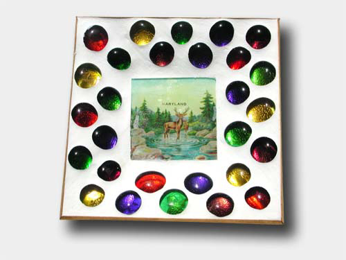 This ash tray looks like it was made in a middle school arts & crafts class. It has that kind of simple, well-meaning uselessness. I don't know what the white stuff is that the colored glass stones are set in, but it's porous and easily stained. And I could never stub my cigarette out in Bambi's face. However, it was not lovingly made by a school child to enable her parents' smoking habit. I found a stack of them at Beckley's truck stop in Thurmont, Maryland. I bought them all, and gave away some as gifts. If you are the proud possessor of one of these, then you know that you are special to me. I have kept this last one, and I swear that I'll never use it. I just like looking at it. |
