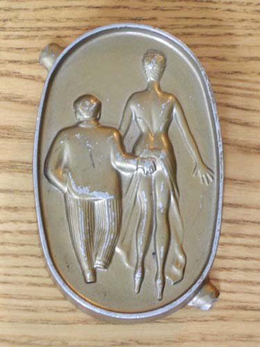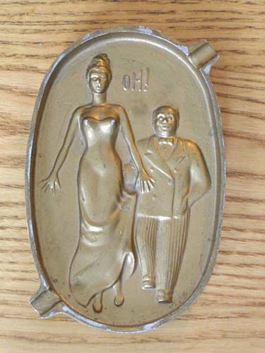 I'll bet you think I've got an animal theme going on here. I don't...this is a totally different kind of goose. While the couple pictured on the ash tray appear to be of the wealthy class, it appears that the man is wealthy, but has no class. Flip the ash tray over, and you see that he is goosing his female companion. |