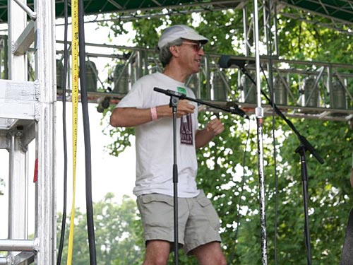 After a short but memorable visit to Fruita, Colorado in the spring of 2006, I knew I had to write a song about its most famous resident, Mike the Headless Chicken. In 1945, "Mike" was the name given to a chicken who was headed for the skillet, but not enough of his neck was cut off, and he survived -- for eighteen months. He lost his head, but he became famous, and travelled all over the country for sideshows. Mike the Headless Chicken's story may not be the most uplifting one of the struggle to overcome adversity, but it certainly is my favorite. Having little experience writing a song, I enlisted Carolee Rand to assist me by coming up with a melody and an arrangement. I knew that Carolee would treat my lyrics with the sensitivity necessary to convey the underlying social ramifications of displaying a headless chicken to the American public. "The Cluck Stops Here: The Ballad of Mike the Headless Chicken" is a song about the triumph of a brave chicken over adversity. There's a message for all of us in there somewhere. The song had its first performance at the 2006 Tacky Treasures Road Show. Judging from the audience's reaction, we decided to take the song on the road. So, for the first time in about four years, I ventured back to the Appalachian String Band Music Festival in Clifftop, West Virginia to enter the non-traditional band competition. The band, called Road Show, consisted of Carolee, me, and our respective Bobs (Bob McCluskie and Bob Cantor). Carolee's voice really carried the song. I predict that her singing will always be considered the quintessential interpretation of the song, somewhat like Louis Armstrong's "Mack the Knife," or Cyndi Lauper's "Girls Just Wanna Have Fun." I can't picture anyone else singing it. Bob McCluskie's soulful fiddle playing was a pleasant surprise. He's not just another old-time fiddle player. And the fiddle break gave the audience time to catch its breath from all the laughing. Bob Cantor played percussion on the shaky egg. He sang backup on the chorus, and as a bonus, treated the audience to a chicken dance. He's been telling people ever since that this proves that he'd do anything for me. As for my performance, I think my greatest contribution was writing the lyrics. On stage, I was afflicted with the same malady that made me change my major in college from music to library science. Fortunately, my peformance anxiety is only limited to playing instruments. My banjo playing was shaky, but my voice was not. At one point, I had my fist in the air and was encouraging the crowd to sing "Mike! Mike! Mike! Mike!" along with us. I would like to thank Lynda Folwick for taking these pictures during our performance. We had many friends in the audience, and I think we made some new ones in the process. I dedicated the performance to the memory of Kelly Perdue, whose absence was keenly felt by all who knew him. I know he would have enjoyed the ballad of Mike the Headless Chicken; among his many admirable qualities were a sense of humor and the love of a good story. Although we didn't win any awards, I'd say our mission was accomplished. By Friday night, you could hear people all over the campground discussing Mike the Headless Chicken. I hope they went back to their communities to spread the word of this miraculous chicken. View a performance of the song (via YouTube) |