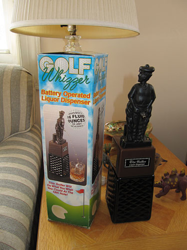 Second Place: Golf WhizzerAm I going to have to start a category called, "Liquor Dispensers I'll Never Drink Liquor From"? I already have "Salt and Pepper Shakers I'll Never Use" and "Mugs I'll Never Drink Out Of" so I suppose this was inevitable. This battery-operated liquor dispenser is in the shape of a golfer who just can't wait to get back to the clubhouse to take a pee. Or as the slogan on the box says, "This golfer will do what you wish you could at the eighteenth hole!" Which would be true if you wished you could dress like a dork and dispense Southern Comfort through your penis.