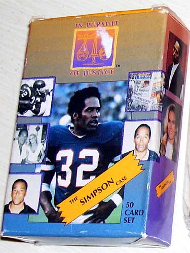 Fifth Place: O.J. Simpson trial trading cardsThe maker of these cards showed a complete lack of shame in exploiting the tragic death of two innocent people. Even though they claim that the a portion of the proceeds from the sale of the cards would go to unnamed organizations that support victims of domestic abuse, I still think this is in poor taste. The cards feature photos of the prosecutors and defense attorneys, as well as photos of the victims Nicole Brown Simpson and Ronald Goldman. Also included are photos of OJ's ex-girlfriend, the crime scene, the Bronco that he used in his slow-ride on the Santa Monica Freeway, and his suicide letter (ick). The real justice in all this is that these didn't become collectors' items. They are going on eBay right now for about four bucks. Fred Julien has a good eye for the tasteless. I don't know if he will