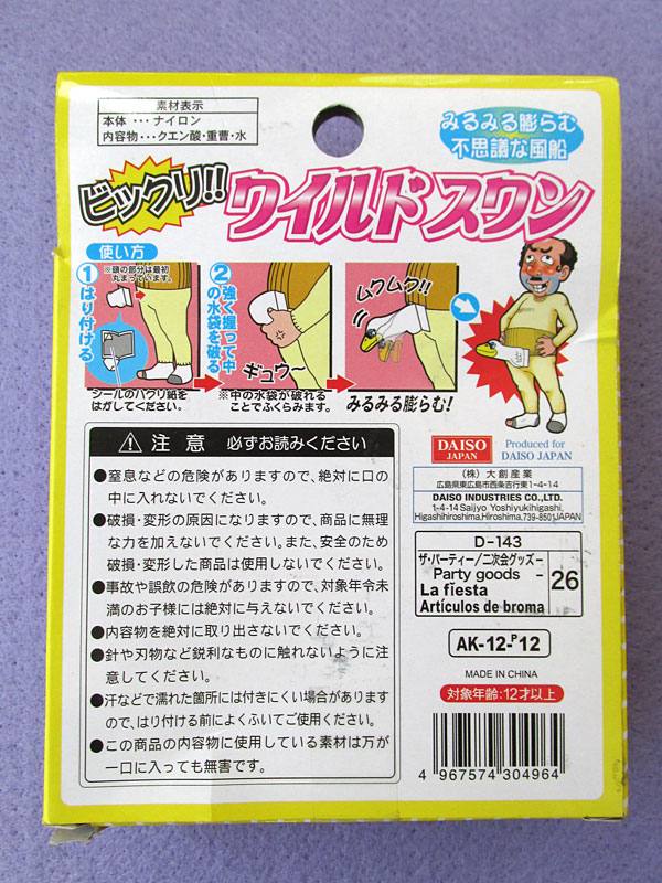 Fourth Place: Inflatable Wild SwanAbbie said she wouldn't have known what this product was for if she hadn't Googled the only English words on the package "Inflatable Wild Swan." That led her to a video of someone using the product. I don't know what motivated this guy to make such a video, but I thank him. https://www.youtube.com/watch?v=K2gTkr8dLuo (skip to 1:40 if you're in a hurry to see how it is used) Don't forget to look at the instructions for using this product, which appear to be modeled by a dirty old man with a hole in one of his socks.