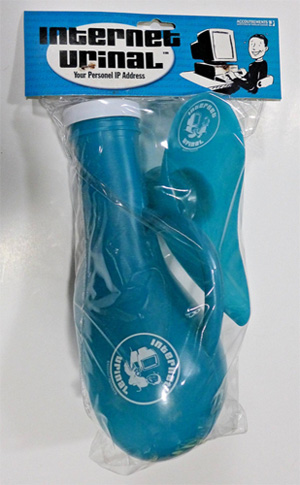 Third Place: Internet UrinalBilled as "Your personal IP address," the Internet Urinal makes it possible for the digitally-obsessed to stay online continuously, without runs to the bathroom. It comes with a "handy female adapter," which I think is absolutely great! I mean it...because in their tackiness, the manufacturers of this product have at least taken into account both genders. In a small way, this is a feminist victory. However, it is still tacky.