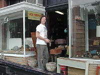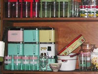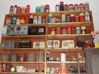P.S. If you go to the store, be sure to tell Stuart you read about it on Julie's web site. Please note: This article was written in 2002. The store has significantly changed from the description below. I can't think of a more entertaining way to spend a Saturday afternoon than rummaging around my favorite antique store, listening to Bob Dylan or NPR and discussing current affairs with owner Stuart Morris. Mt. Rainier, Maryland, is fortunate to have what I consider to be the best second-hand store in the region. I first learned about the store from an article in the Washington Post Home Section. As soon as I read it, I knew I had to go there. I showed up on the following Saturday, about an hour too early for its opening. I was thinking about whether I should wait until noon (not seeing much else to do in that neighborhood for a whole hour), when a banged-up looking truck with a load of 1950s era dinette chairs pulled up in front. When I asked the driver (I had no doubt it was the store's owner) if he would be open on Sunday, he said no. But seeing me head away from his store, he invited me to come inside while he unloaded. Jammed packed with interesting items in various stages of disorganization, the store was a dream come true to a thrift store lover such as myself. I was bowled over by his collection of retro kitchen canisters. (I tried to take a picture of them, but the flashback off of the chrome ruined the picture, and nearly blinded me.) The various nooks in the store contain furniture, toys, housewares, books, art pottery, clothes, and things that defy categorization. I'm waiting for Stuart to acquire a plaid-colored bowling ball, so that I can purchase it and ten of his plaid thermoses and have a bowling tournament on the sidewalk. I think it would be a great way to attract more customers, although I haven't run this by him yet. I try to get back to Mt. Rainier Antique Thrift and Salvage every few weeks, just to see what new has shown up. Even when I'm deep in the zone, searching through some box that wasn't there the last time I visited his store, I find it pleasant to hear him greet every customer, many of whom he knows by name. Even in negotiations, Stuart maintains an even disposition and explains gently and without disrespect to the customer what he thinks an item is worth and why. There should be more places like this on earth. It's a Tacky Treasure. And Stuart, of all people, knows I mean it in the best possible way. Mt. Rainier Antique, Thrift and Salvage (301)779-1740 Hours (it is highly recommended that you call first to be sure he