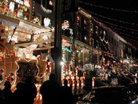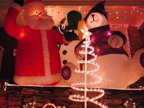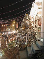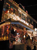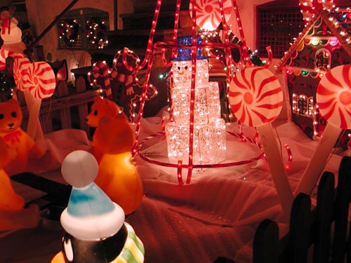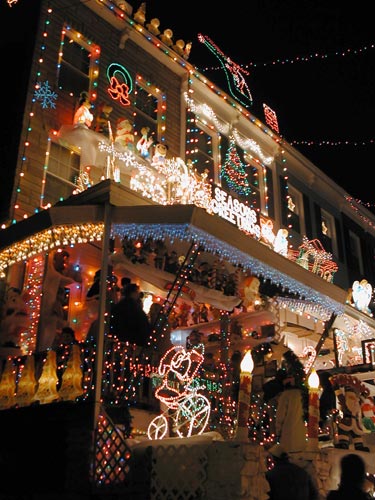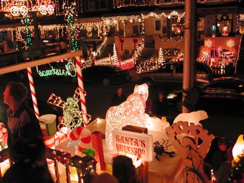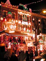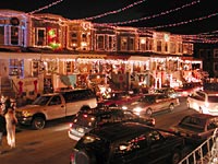 ![]() The Miracle on 34th Street, Hampden, Baltimore, MarylandYou stroll down Chestnut Avenue, and take a left on 34th Street, and suddenly evening turns to almost day. The houses are lit, and the street is bustling with people. Maybe it's tacky, but you have to admire the spirit of the folks on 34th Street, who have been doing this for years. Everyone should see this at least once. These photos were taken in December of 2004. As of 2009, the tradition lives on, and shows no signs of letting up (http://www.christmasstreet.com/). Click on the images to see the larger versions. My favorites were the Christmas tree made of hubcaps, and the sleigh pulled by eight crabs, all carrying tins of Old Bay (too bad the picture didn't turn out). |