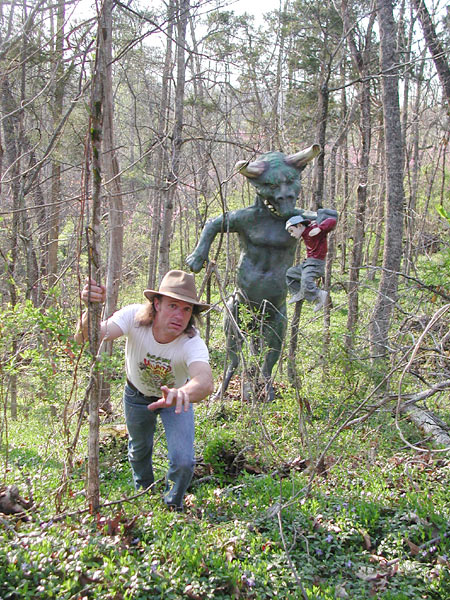 Creator of monsters and dinosaurs, haunted houses and Foamhenge, Mark Cline is more than the "oddball artist" characterized in an article in the Roanoke Times. I suspect it doesn't bother him to be called that, as long as it brings more people to Natural Bridge, Virginia to see his attractions. I first met Mark in 2004, when I learned that he is also a skilled craftsman, storyteller, actor (a ham actor, perhaps, but quite entertaining), street magician, and more. His humor, which pervades all his work, has a charming tongue-in-cheek quality, sometimes in questionable taste, with a little irony thrown in. This is precisely the definition of a tacky treasure. Mark is also responsible for erecting life-size elephants and the famous Carthaginian general, Hannibal in Waynesboro, Virginia. See: Hannibal Crossing the Blue Ridge Mountains To learn more about Mark Cline: