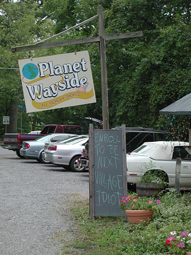 Closed; building demolished I am sorry to say that one of my first designated Tacky Treasure Places is no more. The quirky establishment known as Planet Wayside closed forever in 2006, and the building was razed. A new building has risen in its place, housing Lowry's Crab Shack. It's sad to lose a place with such character, but at least the replacement is an equally beloved local business. I first visited Planet Wayside in October 2001, while on forced leave from work due to the anthrax scare on Capitol Hill. I was still shook up from 9/11, and then this had to happen. I needed something to cheer me up, but mainly I had to get away from the city for a while and calm down. Planet Wayside provided a humorous and somewhat surreal break from a world that seemed pretty absurd to me at that point. Thankfully, the laughing cure worked for me again. On that crisp fall day, I drove into Hamilton and stopped at a health food store because I couldn't find the restaurant, even though it was supposed to be right on business Route 7. There were two ladies in the store who described it to me in this manner: