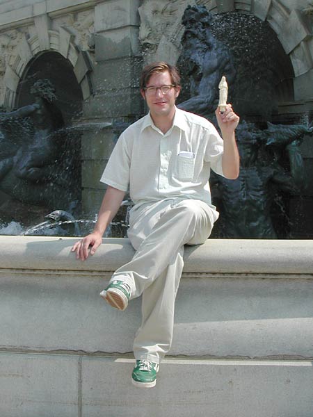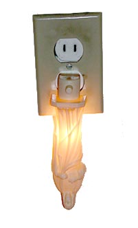 All My Life for Sale, the book and the project, "explored our relationship to the objects around us, their role in the concept of identity, as well as the emerging commercial systems of the Internet." John Freyer sold everything he owned from his stereo equipment to a bag of BBQ Pork Skins. The Jesus Night Light was one of his possessions, which I bought through an eBay auction. Even without the defect, this night light would be a tacky treasure, because it's part of the general kitsch-ification of Christian devotional objects. Because the large prong of this night light is on the wrong side, it is impossible to use it without forcing Jesus to hang upside down, making it even more ironic. But with all due respect, He's been through worse. There was a certain charm to John's description of the night light on eBay, in which he proposed that this would be a convenient devotional figure for someone who had passed out on the floor...not that that ever happens to me. |