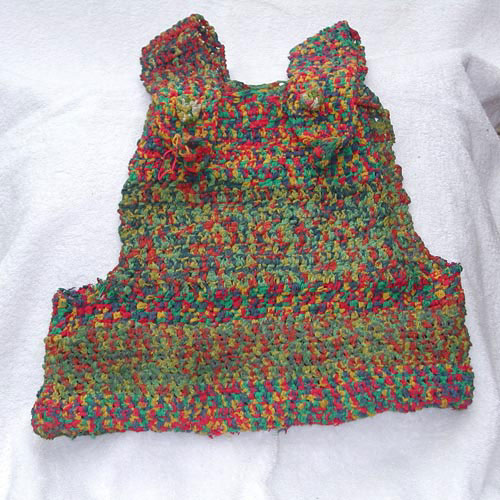 20,000 Rubber Bands -- that's what Carolee estimated it took to create this phenomenal garment. For two years in high school, she went everywhere working on this vest, in class, on the bus, anywhere she had to go where there would be time to work on it. During the course of this project, she learned everything there was to know about rubber bands...she could even identify them by touch. Despite all the teasing and complaints she took from her fellow students at Lincoln High School in Yonkers, New York (and you know who you are!), when she finally wore the finished product to class, no one said a word to her about it. Carolee still sighs with disappointment over that. After she finished her magnum opus, she started a rubber band skirt. But she lost interest after the first few inches, so she cut her losses and called it a belt. The vest and belt were her last creations in the medium of rubber bands. Long gone are her abilities as a rubber band connoisseur, and she now makes her living maintaining a large computer system for a government agency. |